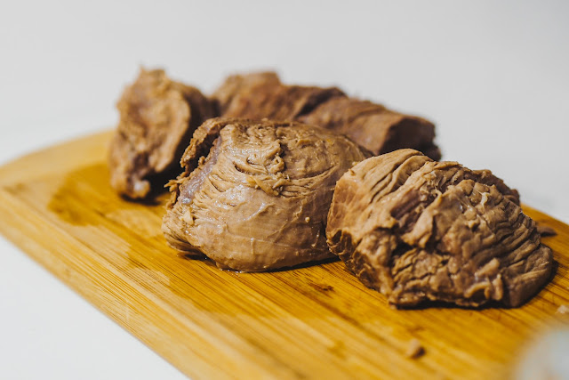 Prepating the Soto Betawi! Look at that hot chunky beef! Quick tip, in order to maintain the tenderness of the beef, they suggested that we don't slice the beef into tiny pieces before boiling it.
