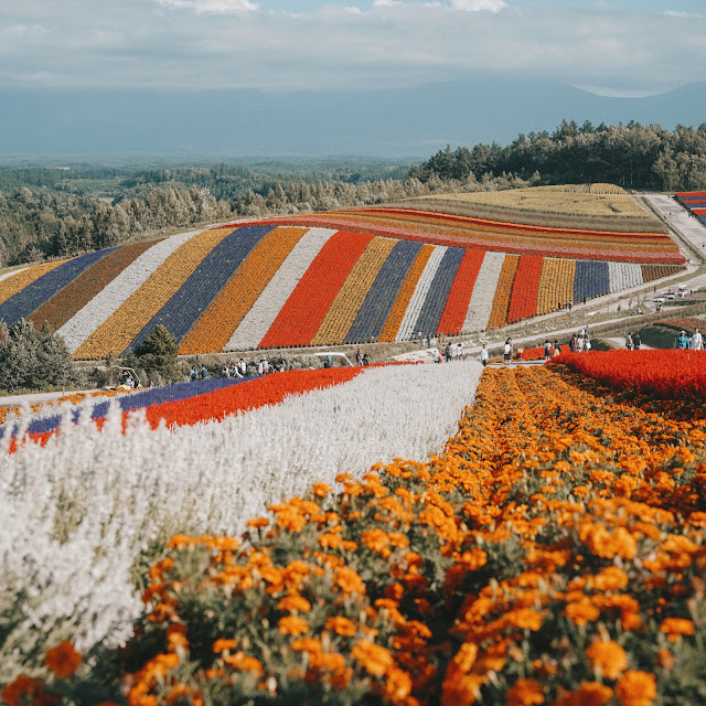 Shikisai No Oka is seriously the spot that you just can't skip when you're in Hokkaido, a flower park that looks like colorful carpet 'made' from arranged blooms! I really wished I had more time to explore the park as I was only given 15 minutes to browse and took quick pics