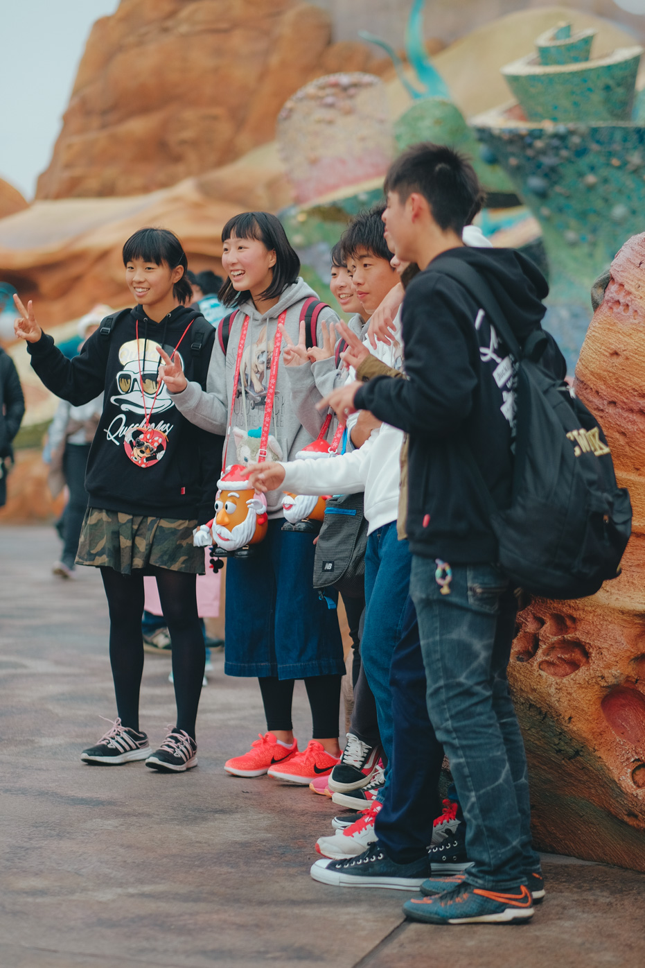 Since I came on Valentine's Day I kinda pre-expected the uber packed crowd, not sure whether Japanese actually took one day off to celebrate (because it was Wednesday), but as soon as I arrived at the main gate...well sea of people, mostly couples in matching tees, matching outers, matching headpieces/accessories, it was actually pleasant to look at.